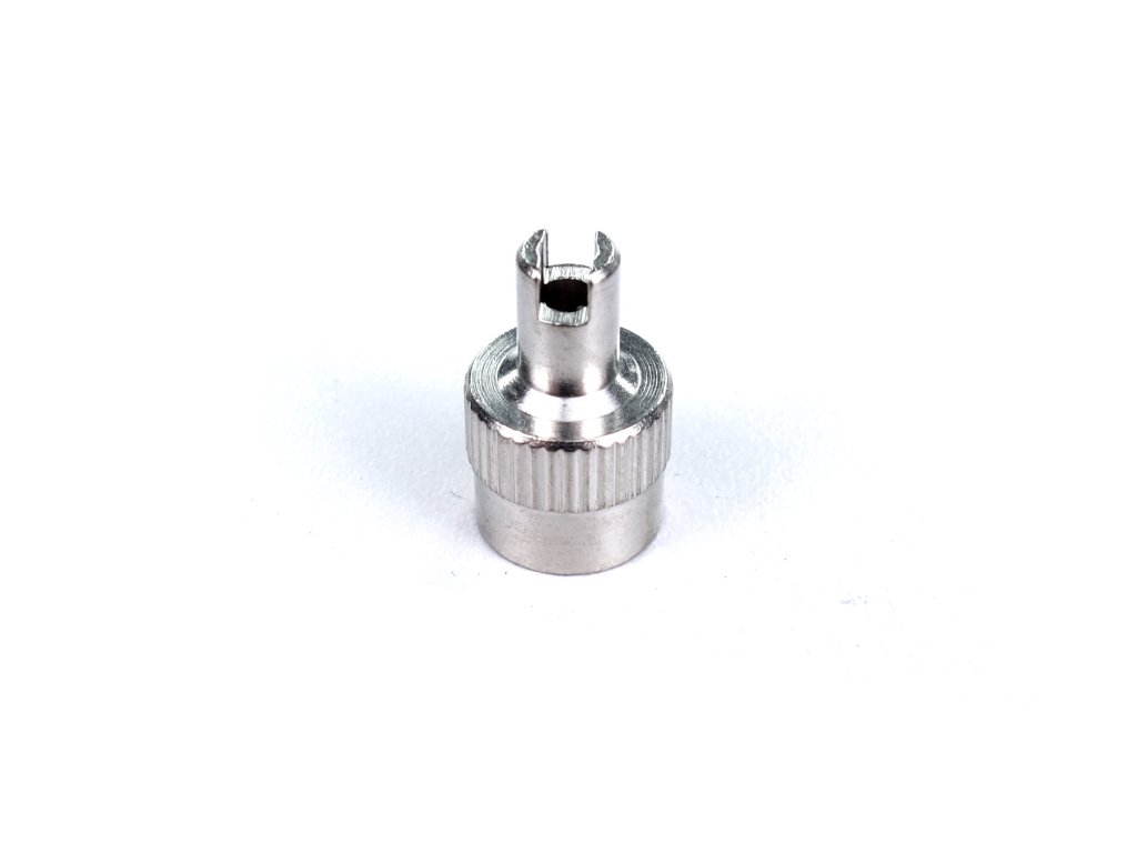 Kovová čepička se šroubováčkem by neměla chybět na žádném kole. Hodí se zejména při přezouvání, pokud chcete rychle a efektivně vypustit veškerý vzduch s pneu nebo duše.