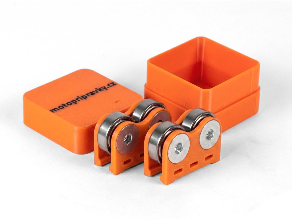 Získate fajnovejšiu krabičku, kam sa zmestí 5-6 nalepovacích závaží, nemusia sa používať drahšie hliníkové skrutky, pretože v tomto vyhotovení sa nehoní každý gram a sú použité štandardné ložiská ZKL, ktoré sú pre toto vyhotovenie viac než dostatočné.