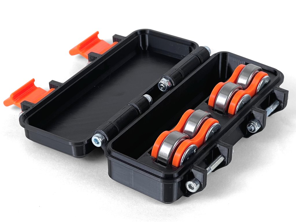 Varianta do garáže má fajnovejšiu krabičku, kam sa zmestí 5-6 lepiacich závaží, štandardné ložiská ZKL a bežné oceľové skrutky.