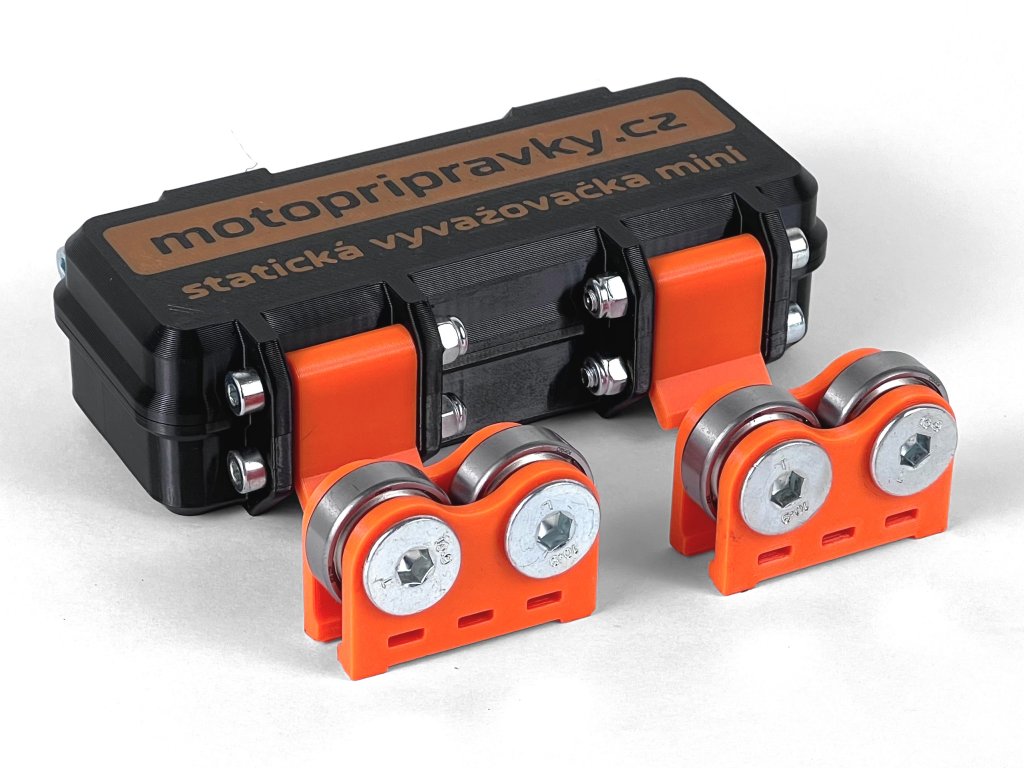 Myšlienka vyvažovačky MINI je v tom, že použijete originálnu os ku kolesu, ktoré vyvažujete, a koleso s osou podopriete len pomocou minimalistických stojanov s ultra-jemnými ložiskami.